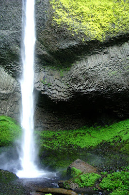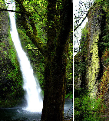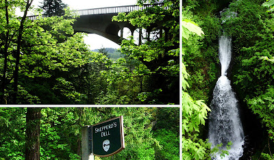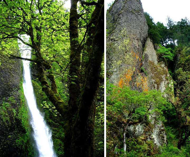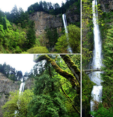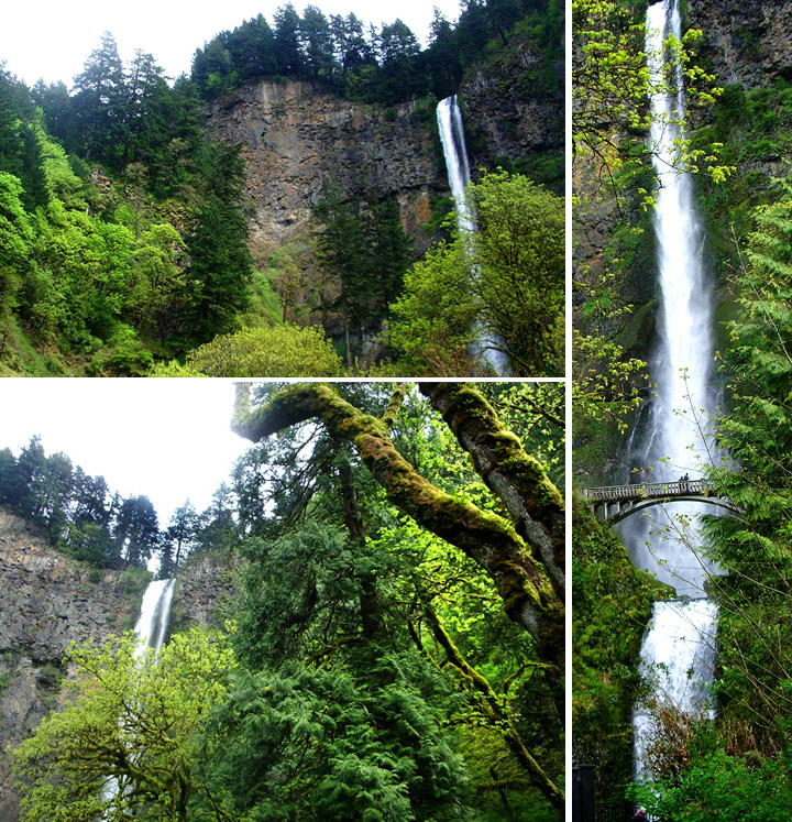 ... Menanti Anda pada sepotong, berliku mempesona jalan (pernah dianggap sebagai puncak dari rekayasa jalan). Setiap air terjun adalah unik, mengesankan dan hanya tenang (tidak ada gambar yang bisa memberi mereka keadilan, meskipun ada banyak Fallspostcards Multnomah terjadi di sekitar). Setiap air terjun duduk di amfiteater hutan yang subur, dikelilingi oleh tebing raksasa dan batu terkikis fantastis.