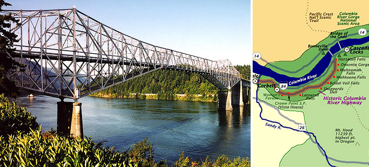 The Columbia Historic River Highway dibangun pada 1913-1922 dengan banyak jembatan di atas jurang memusingkan. Selama bertahun-tahun itu sering disebut "Raja Jalan":
